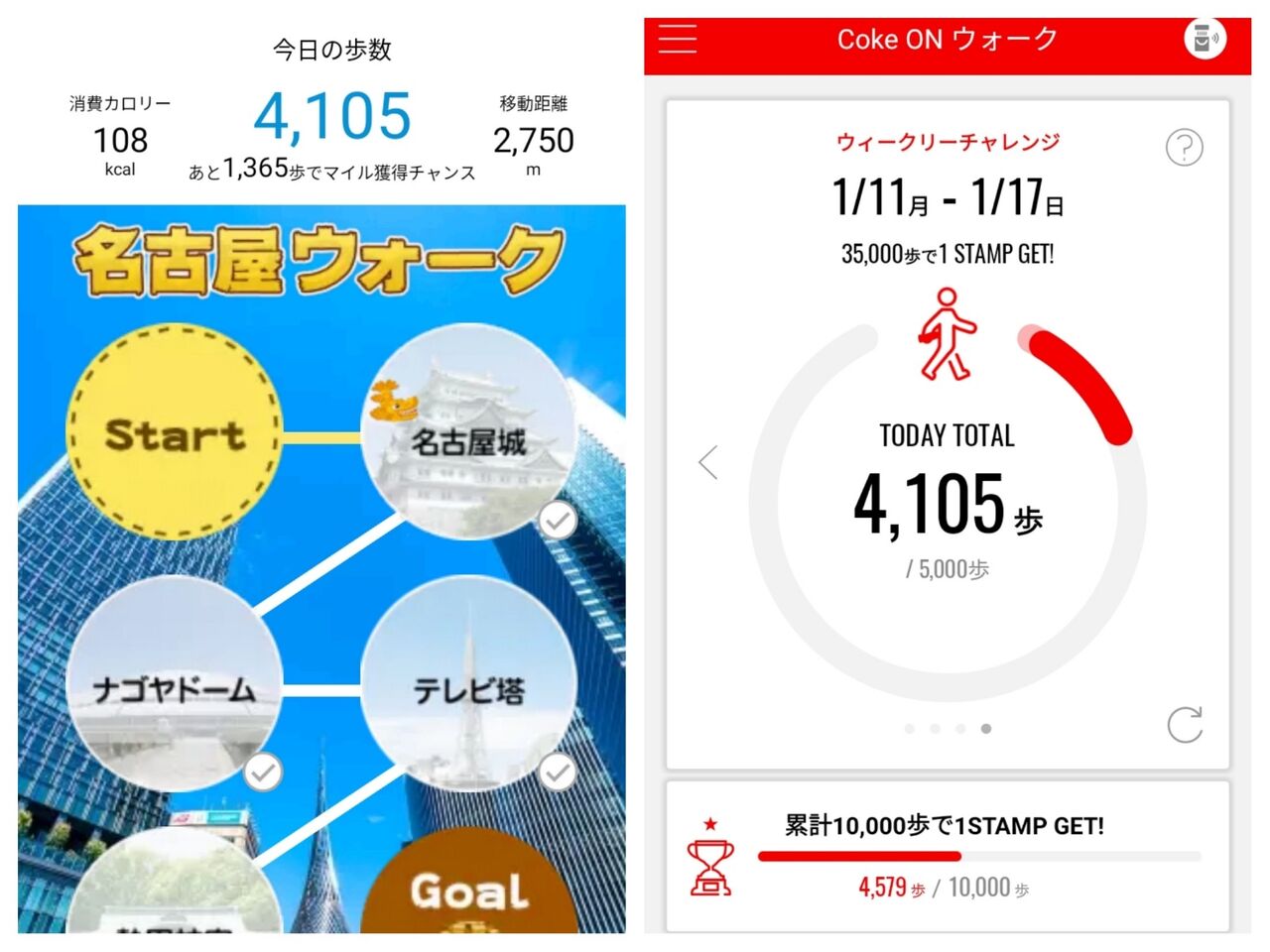 今の時刻までで4105歩~!